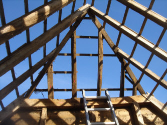 Height to eaves 12.5ft, Height to apex 25.5ft not including plinth